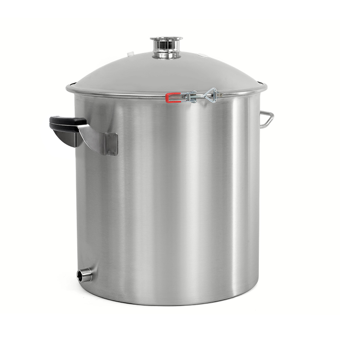 Безопасность 100%. Есть клапан безопасности, который защищает от взрыва и схлопывания перегонного куба.Разметка литража. Позволит отмерить нужный объем браги и спрогнозировать объем полученного продукта.Удобный слив барды. Кран расположен под ручкой — не нужно выгибать кисти, чтобы вылить остатки. Достаточно поднять противоположную ручку.Термометр точно и быстро улавливает любые изменения температуры благодаря щупу, который находится в паровой среде без гильзы.Брагу можно заливать до краев благодаря купольной крышке — есть защита от брызгоуноса и забивания колонны.Есть отверстие для установки ТЭНа. Докупайте трубчатый нагреватель и готовьте любимые напитки без плиты.Регулируемый по длине хомут для крепления крышки.